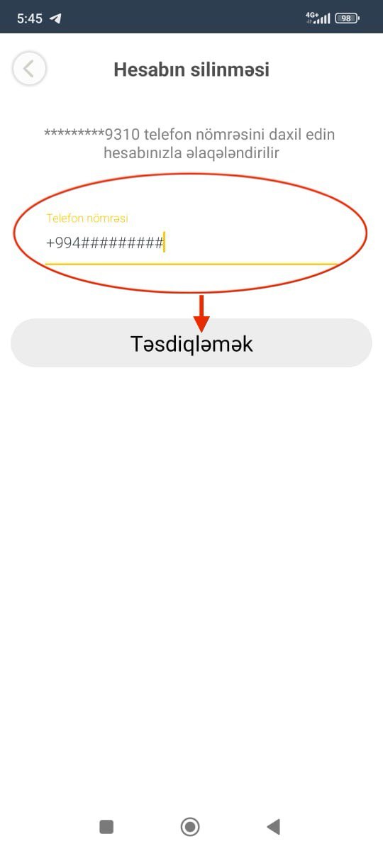 5) Sonra telefon nömrənizi daxil edin və "Təsdiq et" düyməsini basın.